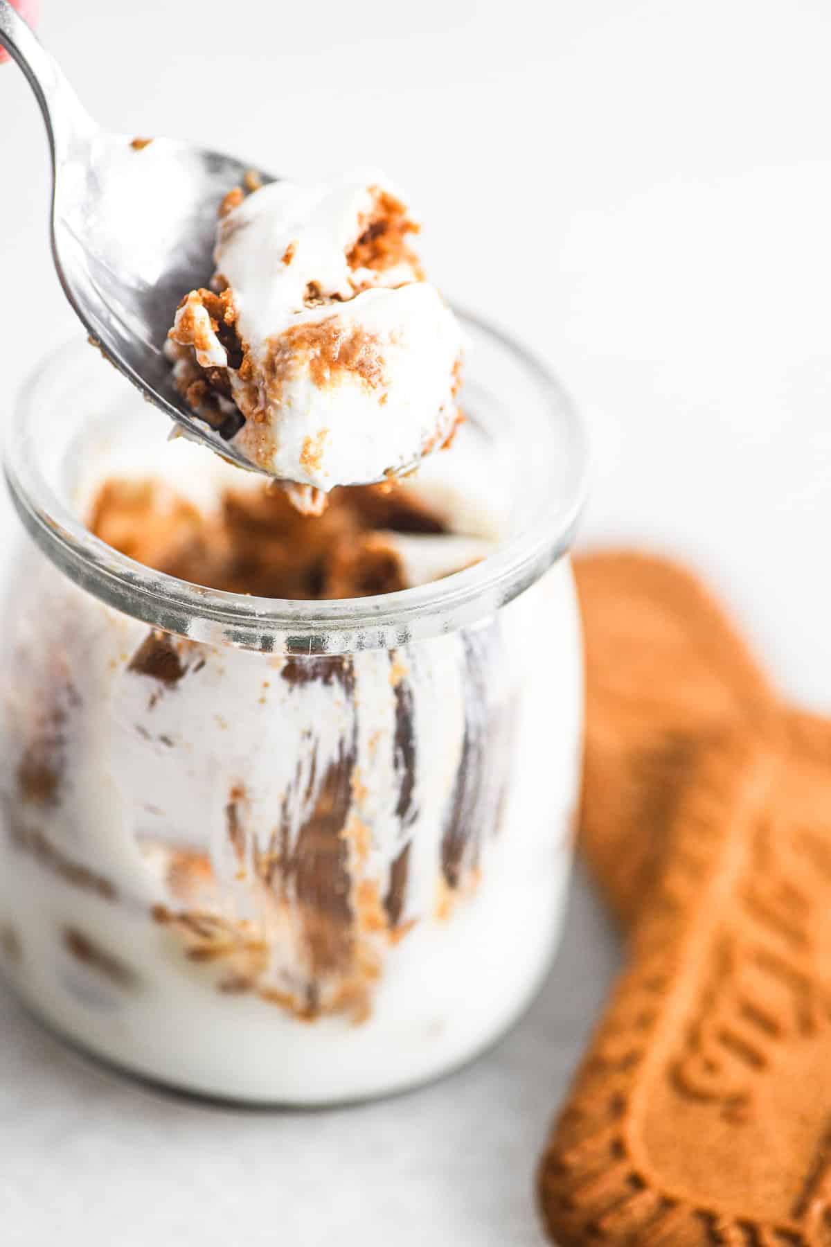 - Alternate layers of plain or vanilla yogurt with Biscoff cookies (or cookie of your choice)