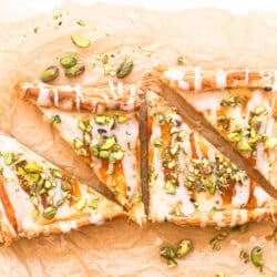 This is my shortcut to a proper Danish, and I’m never going back. I get crisp, flaky layers, a soft tangy center, and a hit of apricot that tastes like I planned ahead (even if I didn’t.) Apricot Danish is a variation of my popular Raspberry Almond Puff Pastry Danish, only this time I’m using an intense apricot jam and a shower of pistachios over the sweet cream cheese filling.