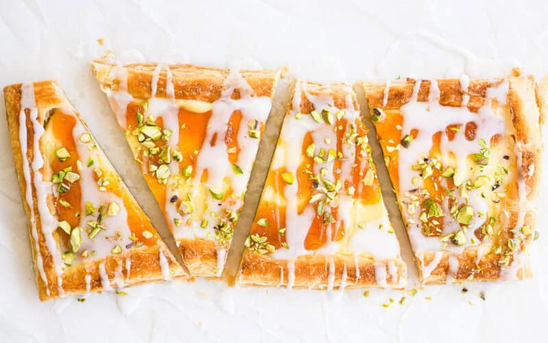 This is my shortcut to a proper Danish, and I’m never going back. I get crisp, flaky layers, a soft tangy center, and a hit of apricot that tastes like I planned ahead (even if I didn’t.) Apricot Danish is a variation of my popular Raspberry Almond Puff Pastry Danish, only this time I’m using an intense apricot jam and a shower of pistachios over the sweet cream cheese filling.