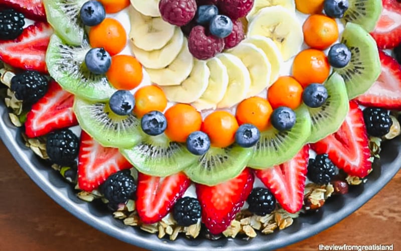 And it’s so versatile ~ you can use any type of yogurt, dairy or vegan, and any type of fruit. Customize the fruit topping according to the seasons for a special occasion brunch centerpiece any time of year.