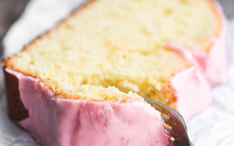 This Blood Orange Pound Cake is a moist, tender orange loaf cake with a gorgeous pink glaze, all thanks to fresh-squeezed blood orange juice.
