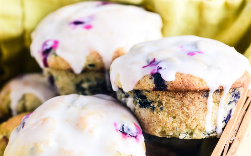 These muffins aren’t too sweet, the shredded zucchini keeps them moist, and you get those awesome bursts of tart blueberry in every bite. The lemon glaze guilds the lily. If you have kids going back to school, or back to home school, these would be a thoughtful treat for them.