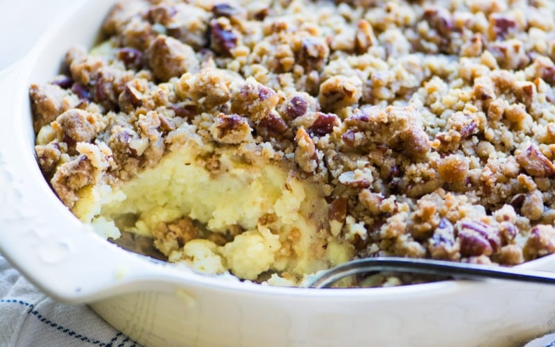 I accidently bought white sweet potatoes and thought Thanksgiving was ruined but lo and behold, I found this recipe and we will never have sweet potato casserole for Thanksgiving any other way!!! My boyfriend went so far as to say that this was the best potato dish he had ever tasted! Only alterations to the recipe were that I used were almond flour instead of regular, and added a splash of vanilla extract to the potato mixture/filling. Thank you for saving the day!