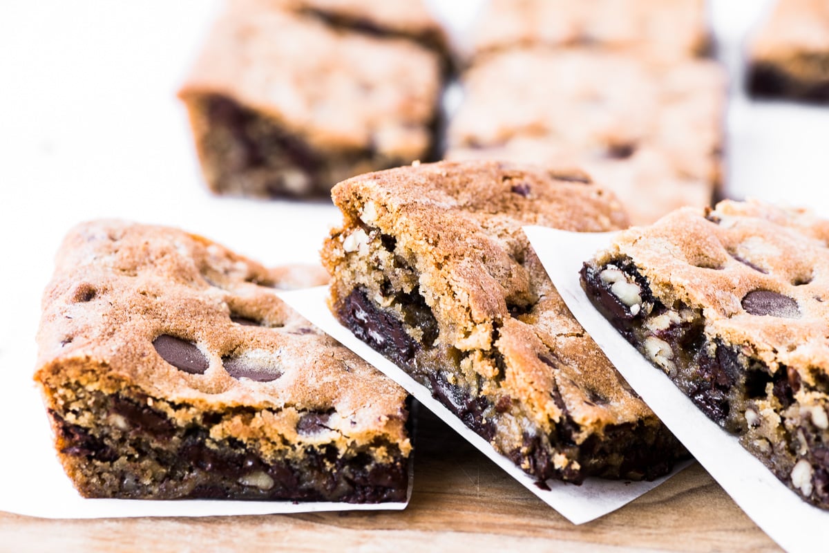 Toasted Pecan and Dark Chocolate Chip Blondies