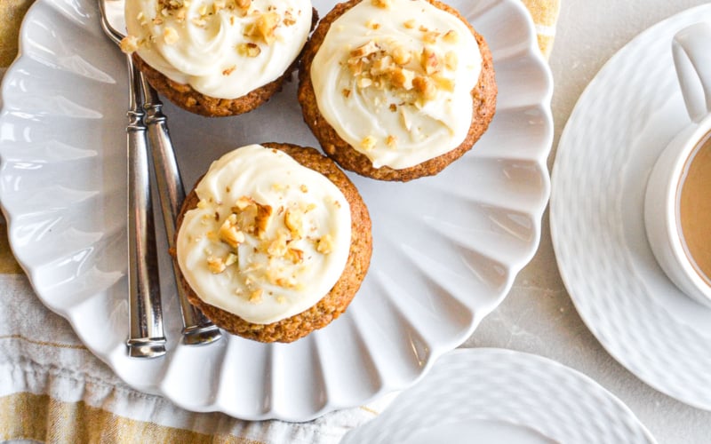 - For gluten free carrot cake muffins use a good 1:1 gf baking mix. (Or try my Gluten Free Carrot Cake with Cream Cheese Frosting!)