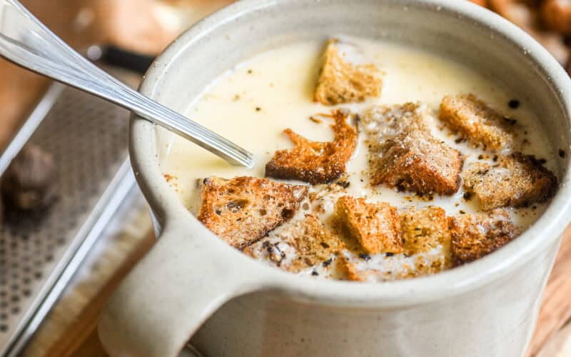 - The final touches: add kirsch, nutmeg, croutons, and serve!