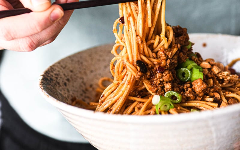 Burning noodles is a standalone dish. That means it’s a complete meal and does not need any other side dish to go along with it. The noodles, pork, chili oil, peanuts, sesame seeds, and other toppings provide plenty of flavor and substance.