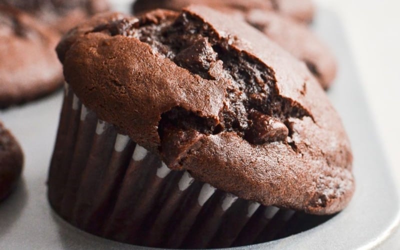 - use regular chips, mini chips, or chocolate chunks, they turn chocolate muffins into double chocolate muffins!