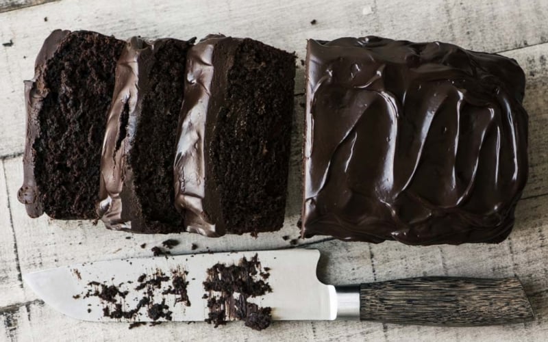I made this for the very first time but chose not to include chocolate chips in the batter because I thought they might turn hard once the bread had been refrigerated. I work in a commercial kitchen and got a customer complaint that the chocolate bread was too bitter and the ganache became hard, plentiful as it was on the slices. My recommendation was to put each slice in the microwave 10-15 seconds or so to soften up the ganache. I made two loaves, so the next loaf will have milk chocolate ganache to sweeten and soften up the top some. Do you have any recommendations for better next time, Sue? Thank you!!