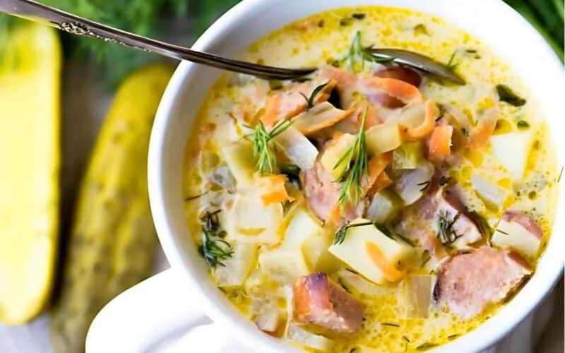 Never had dill pickle soup? You’re not alone. It sounds quirky, but one spoonful and it clicks: a lightly creamy base balanced by tart, vinegary dill pickles, with smoky brats adding backbone and depth. The brine brightens, the dill perfumes, and the sausage turns it into real comfort food ~ unexpected, but absolutely right.