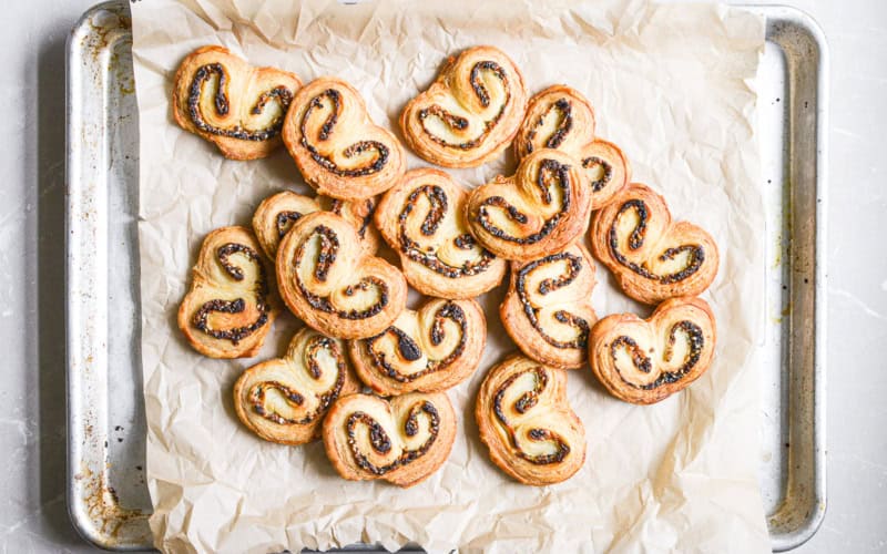 Give the palmiers enough space for expansion during baking – use two baking sheets or bake them in batches if you need to.