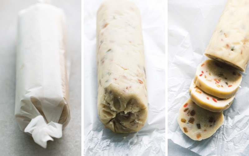 - The hardest part of making these fruitcake shortbread cookies is waiting for your log of dough to chill.