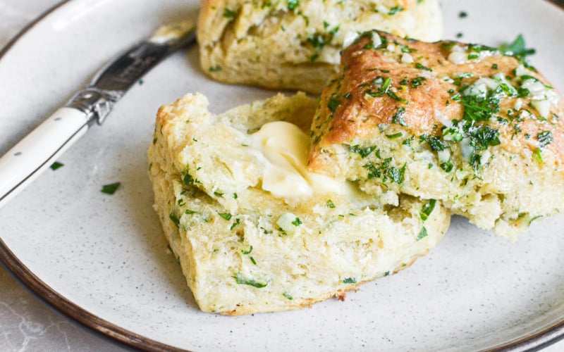 - fresh parsley is mixed into the dough as well as the butter topping. It gives these biscuits pretty green flecks and a bright herbaceous-ness that balances out the buttery-garlicky-goodness very nicely.