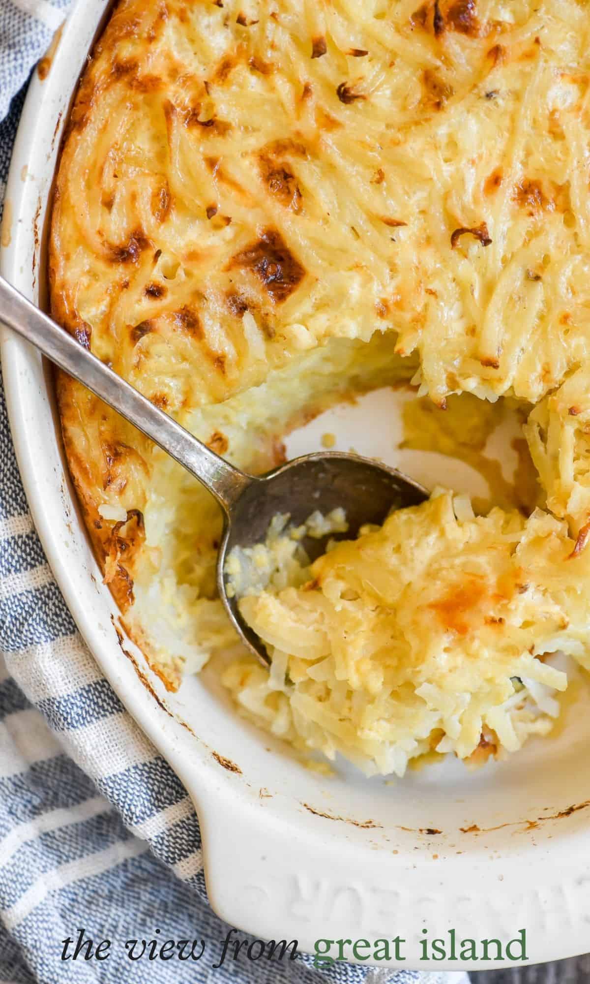 Mini bakes ~ portion this potato casserole into (well greased) muffin tins for crisp edges and easy serving.