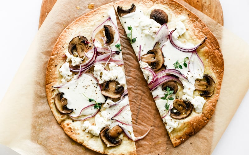 TIP: Don’t worry about mixing culinary traditions here, your flatbread pizza crust can be Middle Eastern, Mexican, or Indian. etc. As long as it is unflavored, it will work perfectly. (I’ll dive into all your choices below.)