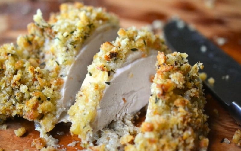 I didn’t have the total amount of bread crumbs, used 1 1/4 cup. I used skinless chicken breasts and they were large.This is awesome, good enough for a dinner party! I’ll be saving this in my recipe binder with the small changes. Fabulous!
