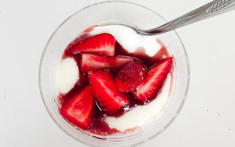 - Macerated fruit, like I’ve done here with strawberries ~ choose soft fruit that will release their juices when mixed with sugar and allowed to sit like pitted halved cherries, strawberries, raspberries and blackberries, peaches and nectarines.