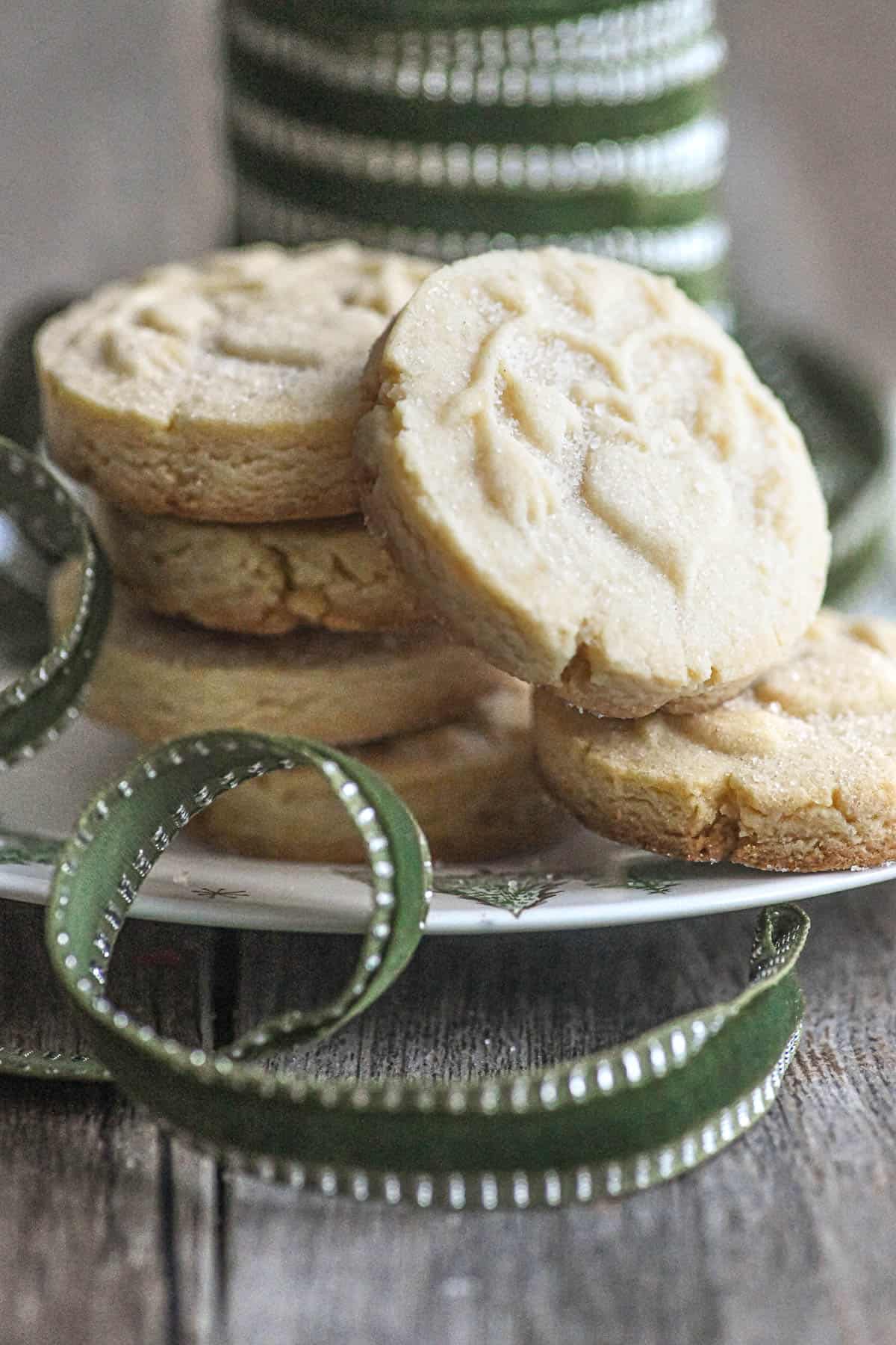 These easy cookies add a bit of Old World European charm to your holiday cookie collection. The almond flavor, the crisp buttery shortbread texture, and the pretty sparkled stamp imprint make them really appealing.
