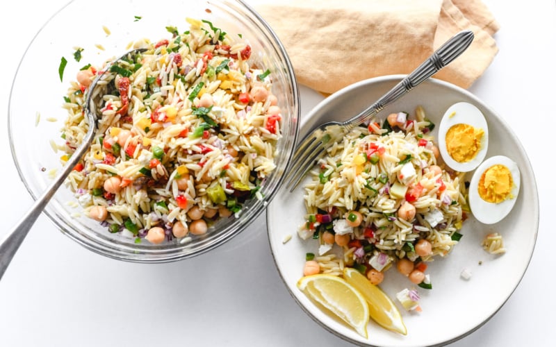 - Customize! Remember that salads in general are very forgiving, and, unlike baking recipes, are meant to be adjusted. I added specific amounts in the recipe but that’s only a rough guideline. You really shouldn’t need to measure your ingredients for this orzo salad, just eyeball them and go with what you love.