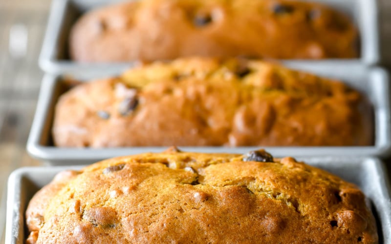 Our favorite pumpkin chocolate chip bread in mini loaf pans for sharing, gifting (or hoarding.) This is that ultimate pumpkin bread you crave all year long.