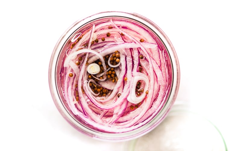 Pickled red onions change from purple to vivid pink