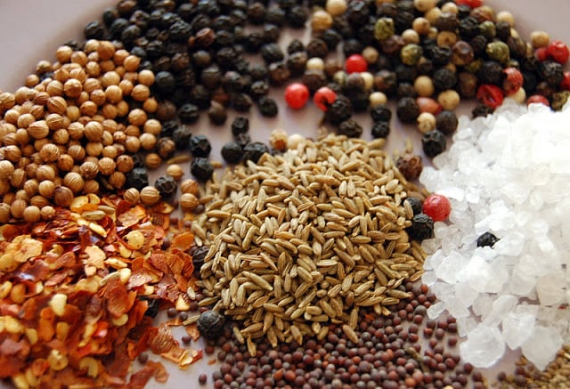 - Mix the spices together in a small bowl and spoon into your clean grinder.
