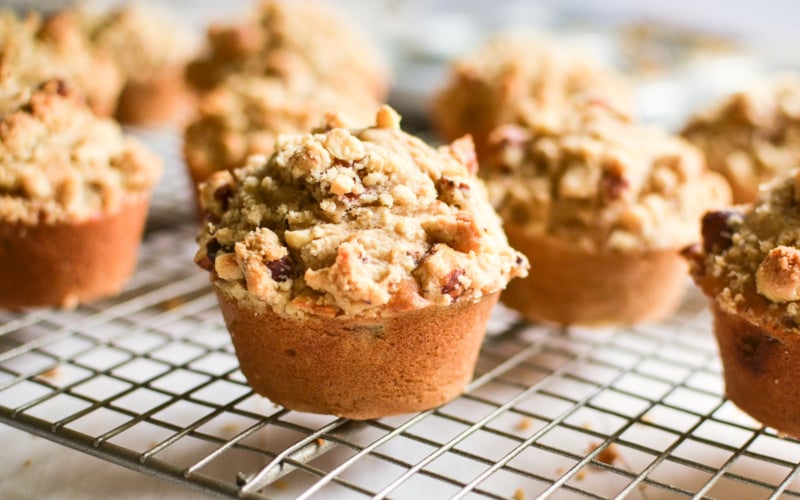 the nutty, buttery hazelnut streusel topping really makes this recipe special, I love the extra crunch it gives to the soft muffins.