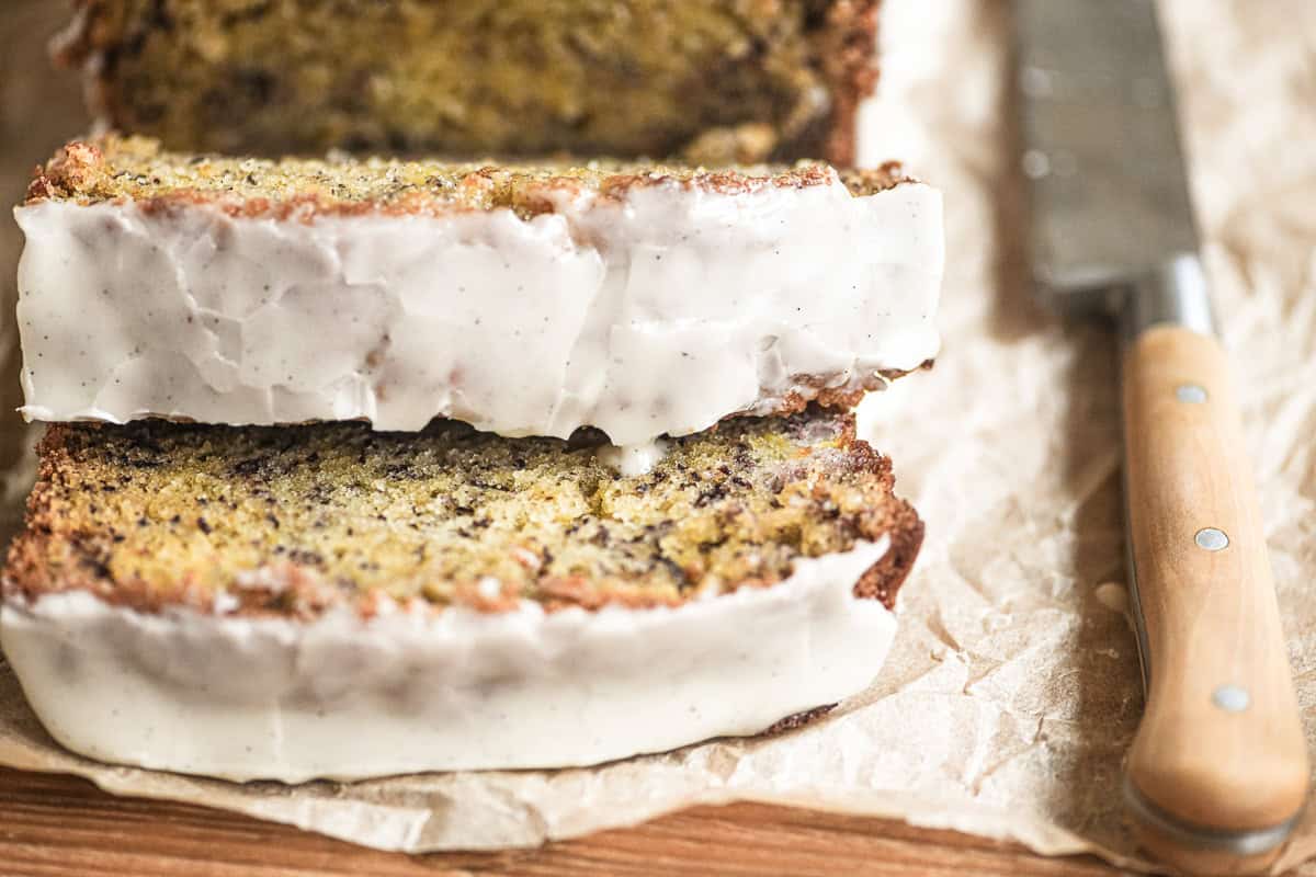 - Spread the glaze over the top of the cooled bread and let set up before slicing.