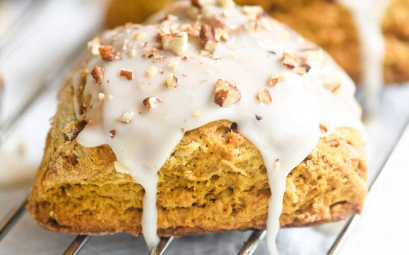 Glaze matters ~ Pumpkin scones aren’t overly sweet on their own, and that’s intentional. A simple glaze adds just the right touch of sweetness to every bite and balances the earthy pumpkin flavor.