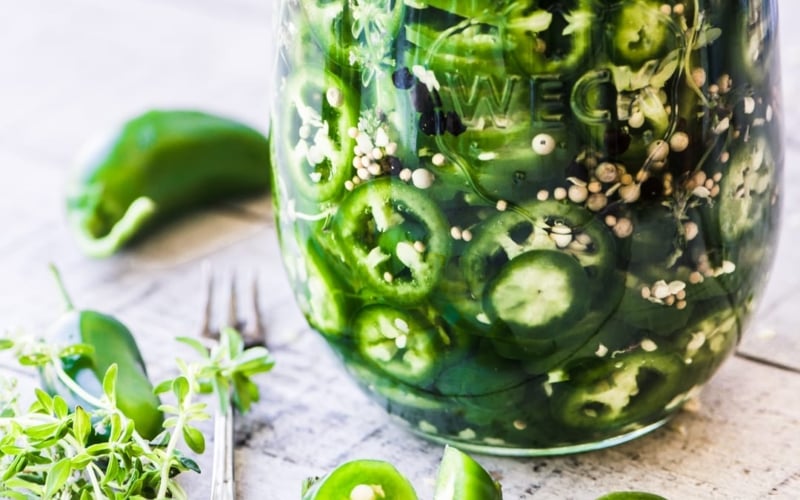 - The seeds contain most of the heat of the peppers, so leave them out for a milder pickle. To do this immerse your jalapeño slices in a big bowl of cold water and skim away the seeds, then drain and bottle.
