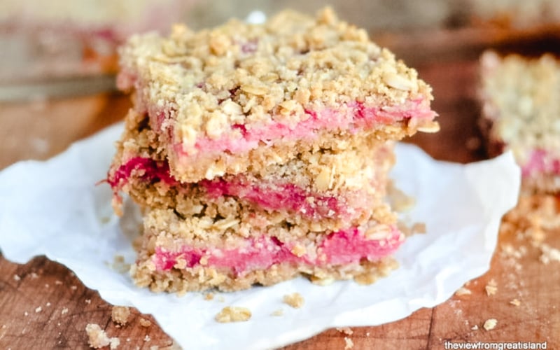 These rhubarb crumb bars were so good I had to break my only taste one serving of whatever I’m photographing rule. I had two. Before lunch.