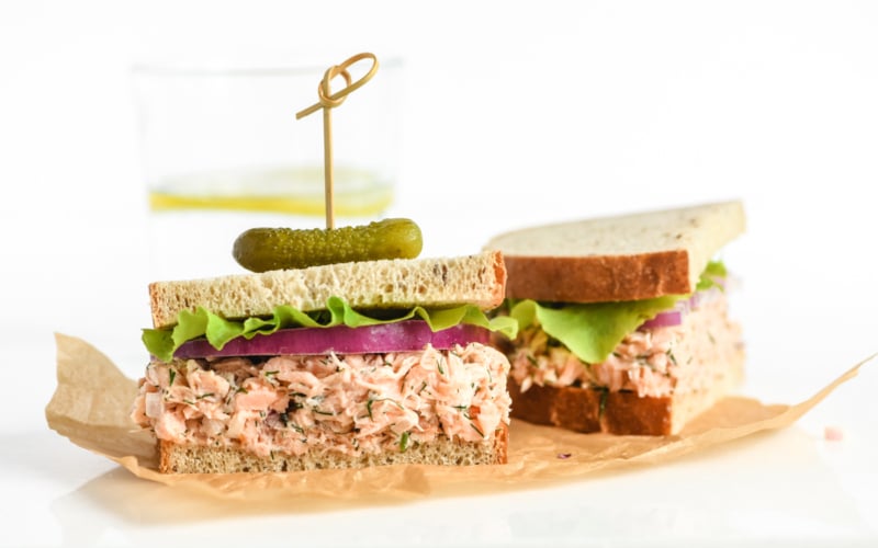 It can be the centerpiece of a summer salad platter, piled on a bagel, or sandwiched between two slices of rye bread. It’s also great on crackers as an appetizer, but I found myself nibbling on it all day, straight from the bowl. (It makes your everyday tuna salad look pretty sad.) The salmon itself is so richly flavored it only needs a little mayo, lemon, and dill to really pop.