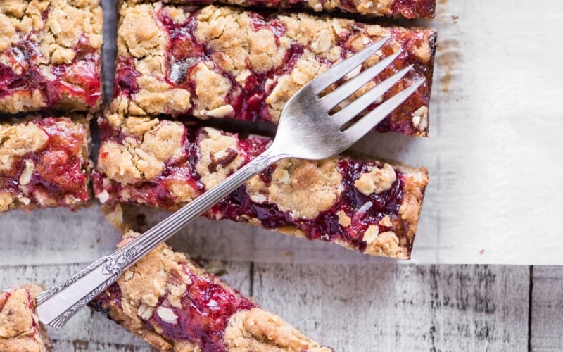 The classic combination really shines in these bars, I use a heavy amount of almond extract in the dough. If you aren’t a fan you can substitute vanilla extract.