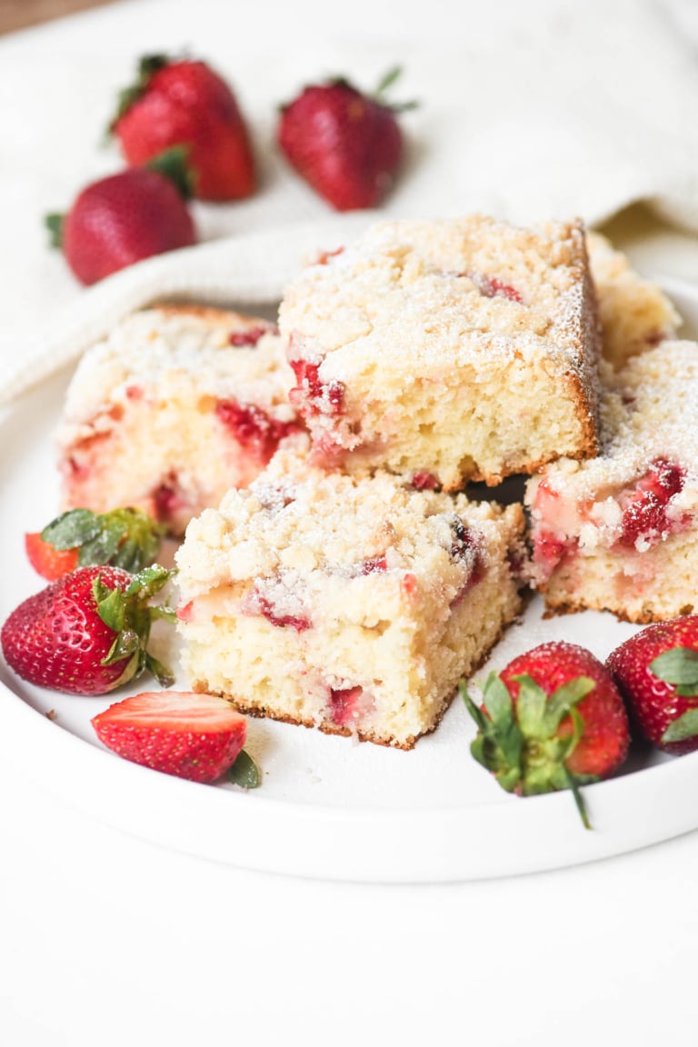 Strawberry crumb cake is just another name for a perfect spring morning baked up in a 9×13 pan. Yum!