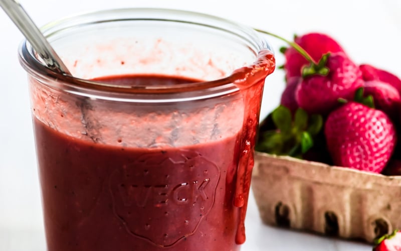 And don’t forget you can make this with frozen strawberries year round.