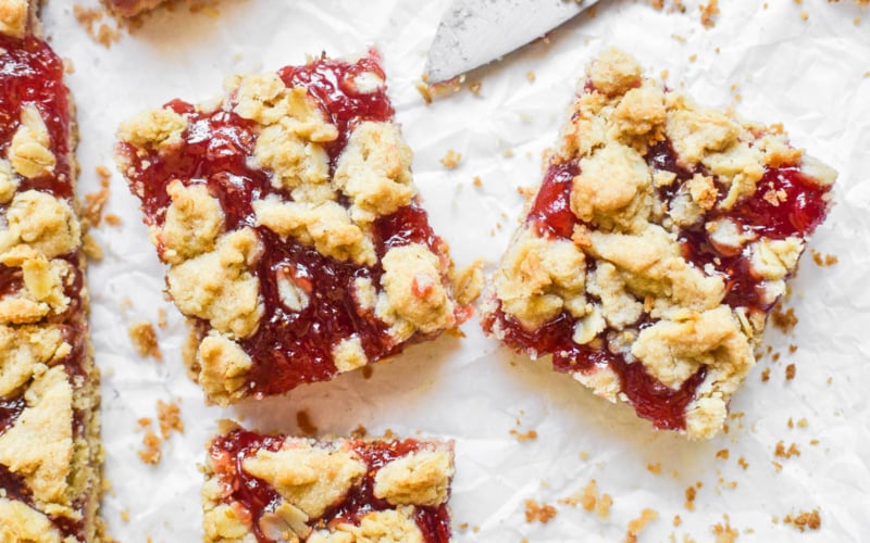 Strawberry jam bars are all about that unbeatable combo of buttery shortbread cookie dough and sweet-tart strawberry jam. This simple dessert never disappoints!