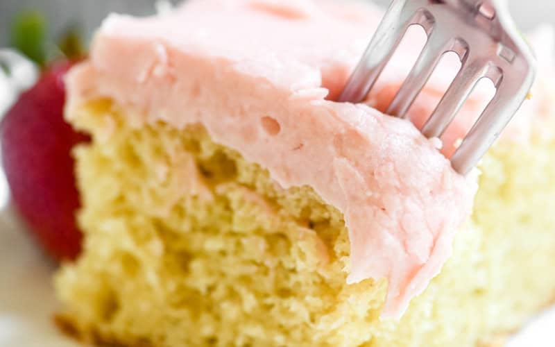 - The strawberry frosting is made with a pint of fresh strawberries ~ no food colorings or artificial ingredients (looking at you strawberry jello mix.)