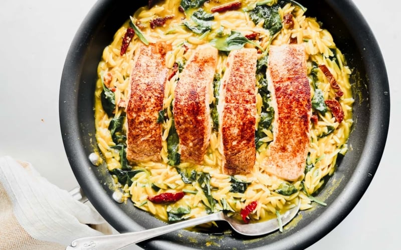 Tuscan Salmon with Lemony Orzo