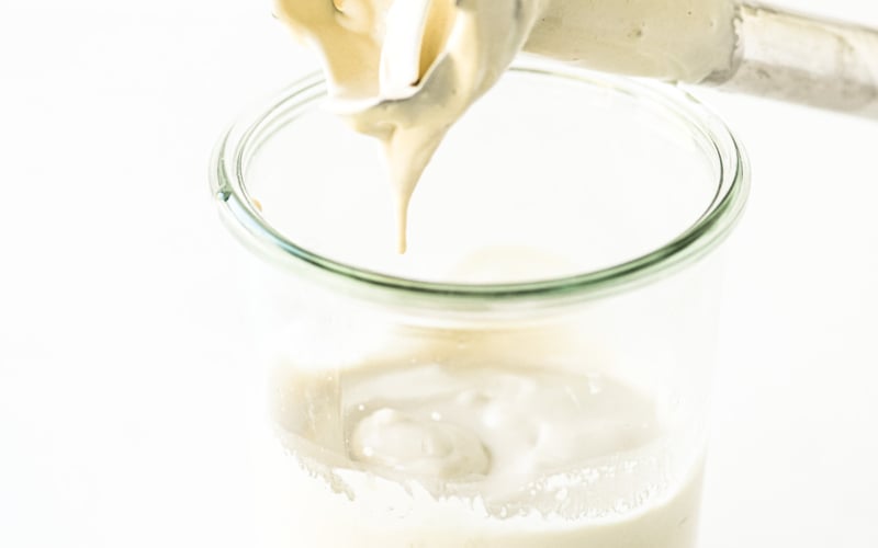 - Start with the blades at the bottom of the jar and blend, wiggling the head of the blender slightly up and down and around until everything is nicely emulsified. You will see the mixture will be light, fluffy and thickened.